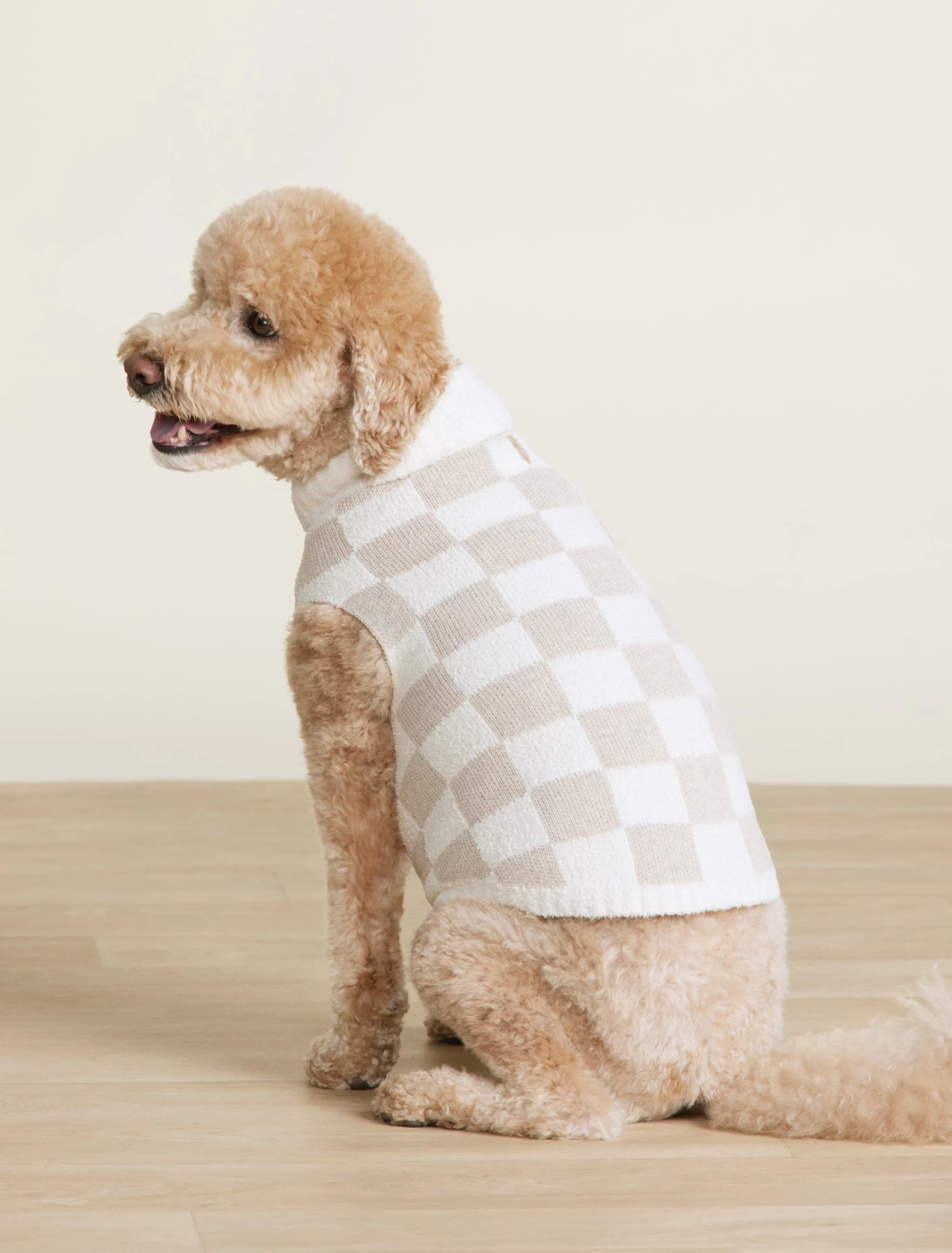 Looped in soft CozyChic and cotton fibers, this pet sweater sports a checkered jacquard pattern and solid ribbed neck opening. Perfect for any pet, this comfy sweater is sure to keep them warm and cozy in any weather. Models are wearing Size S and L.