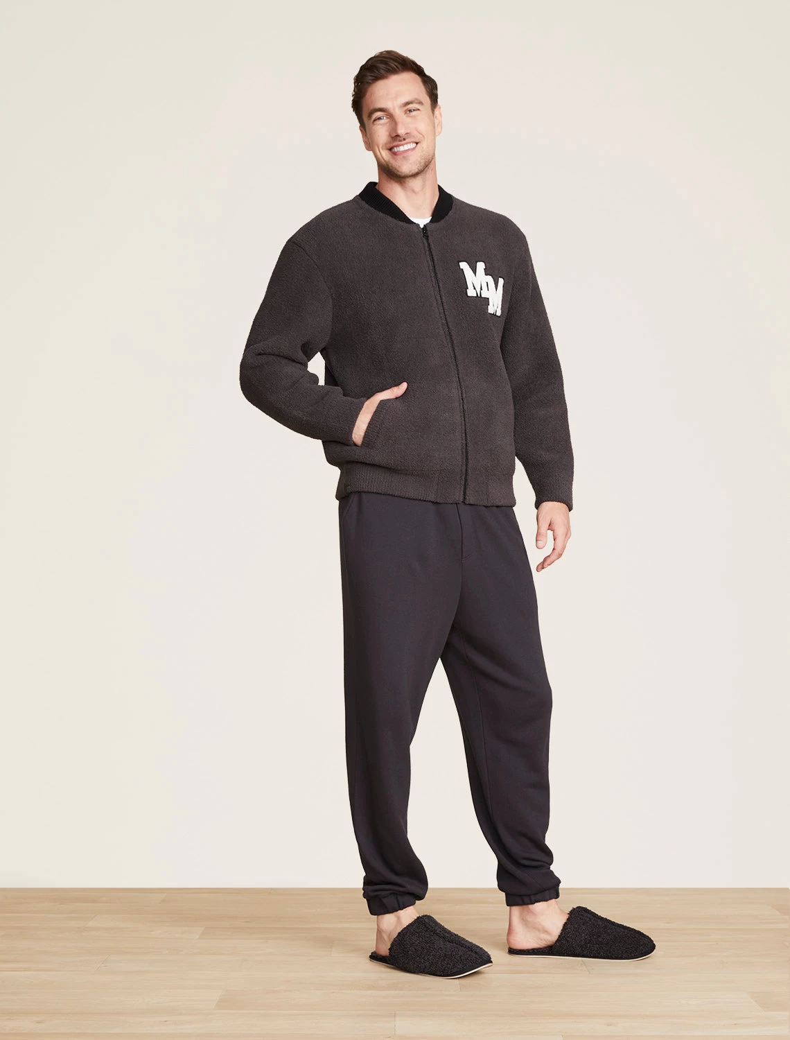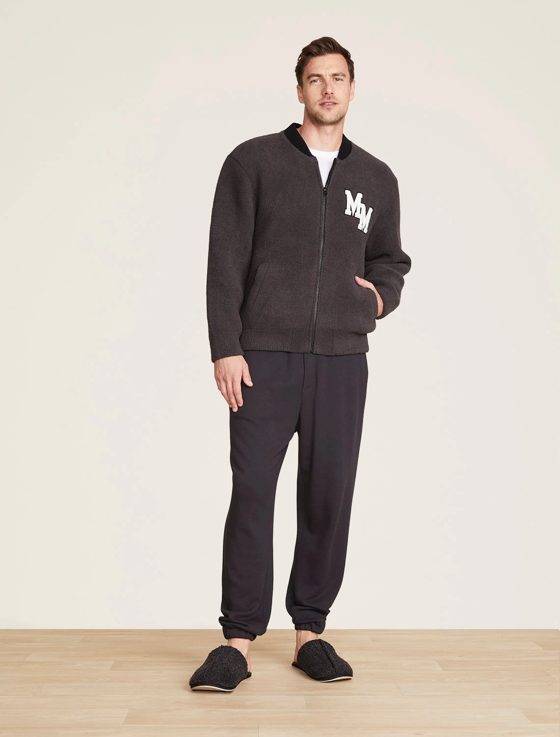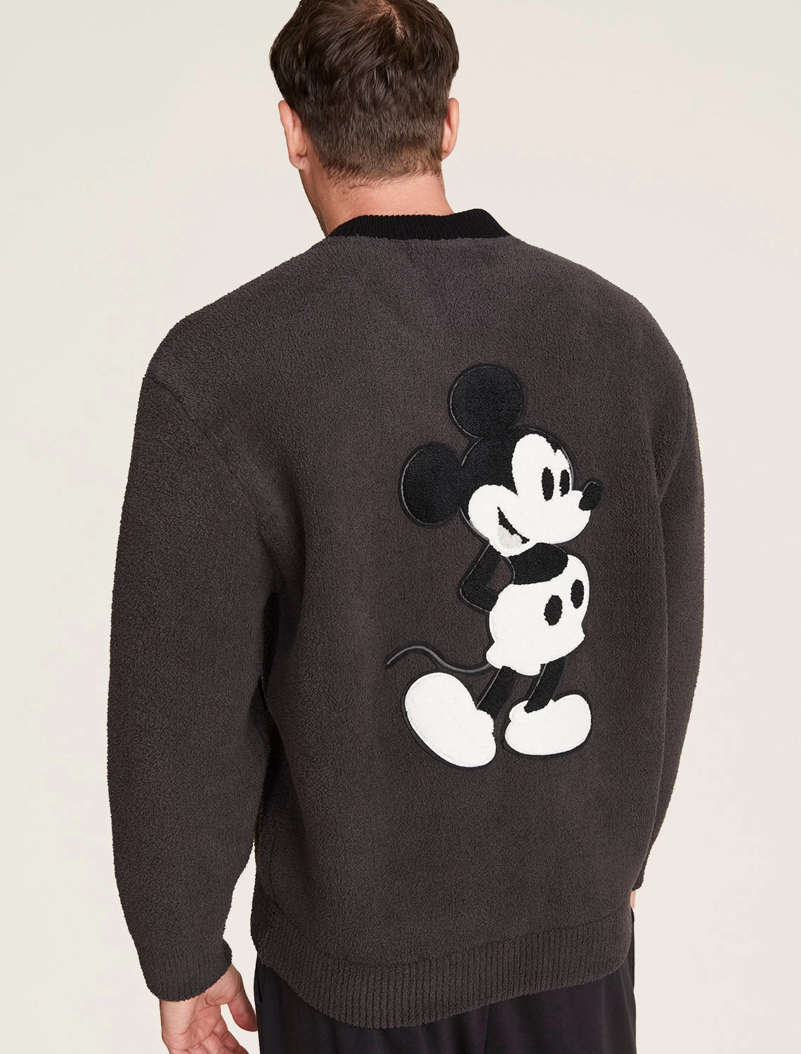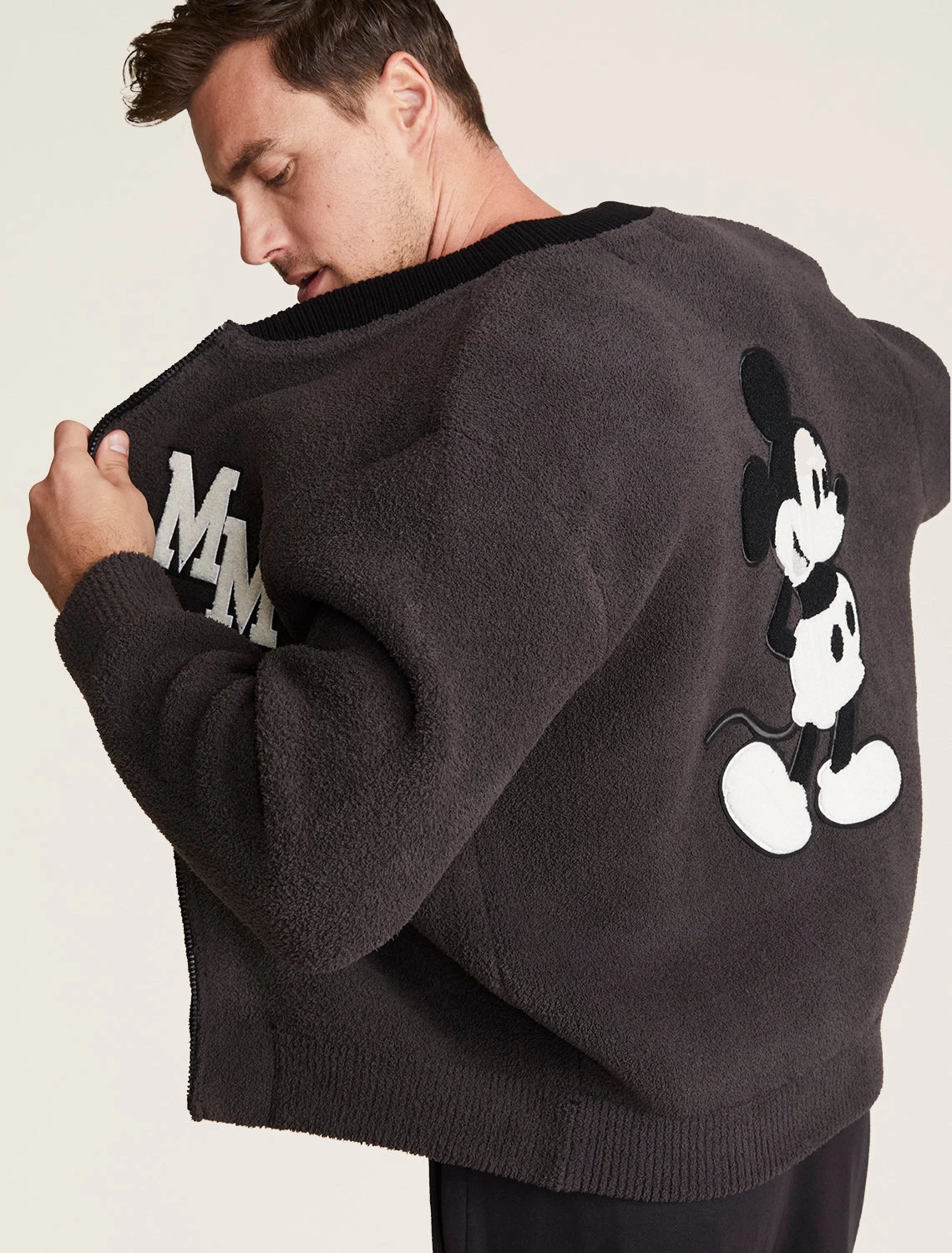 CozyChic® Disney Classic Mickey Men's Varsity Jacket -Barefoot Dreams DNMCC21846 CarbonBlack 1831copy