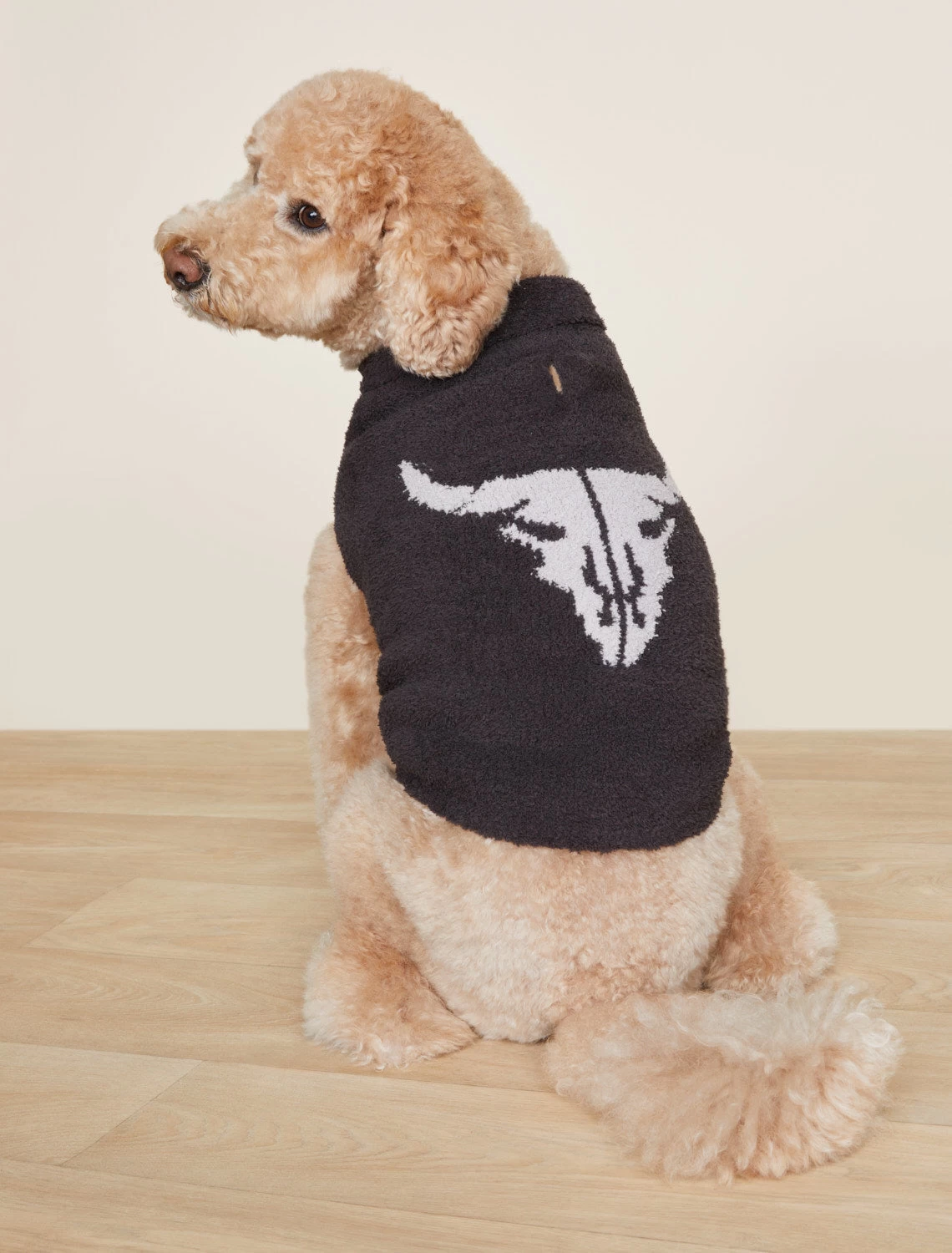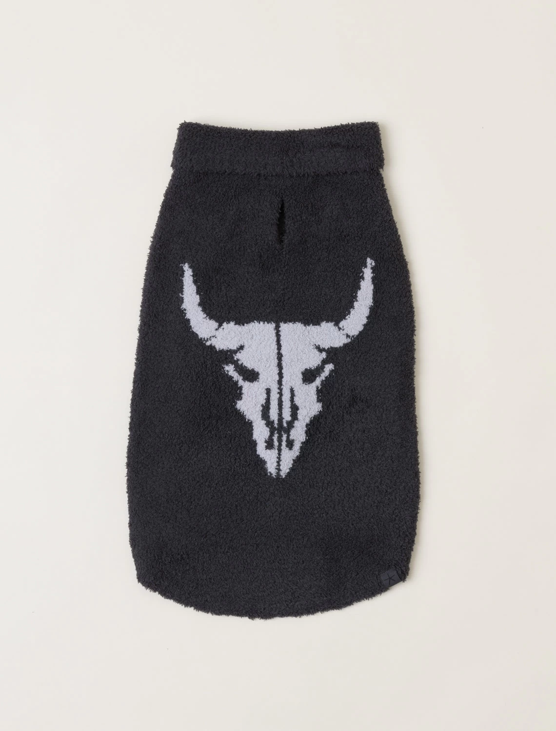 For your four-legged fur-friend, the CozyChic® Longhorn Skull Pet Sweater is the perfect choice. Featuring a foldable neck opening and a longhorn skull motif at the center of the back, this pet sweater is made of rib-knit fabric for maximum comfort and durability. Keep your pet warm during cold days in style! Model is wearing a size L.