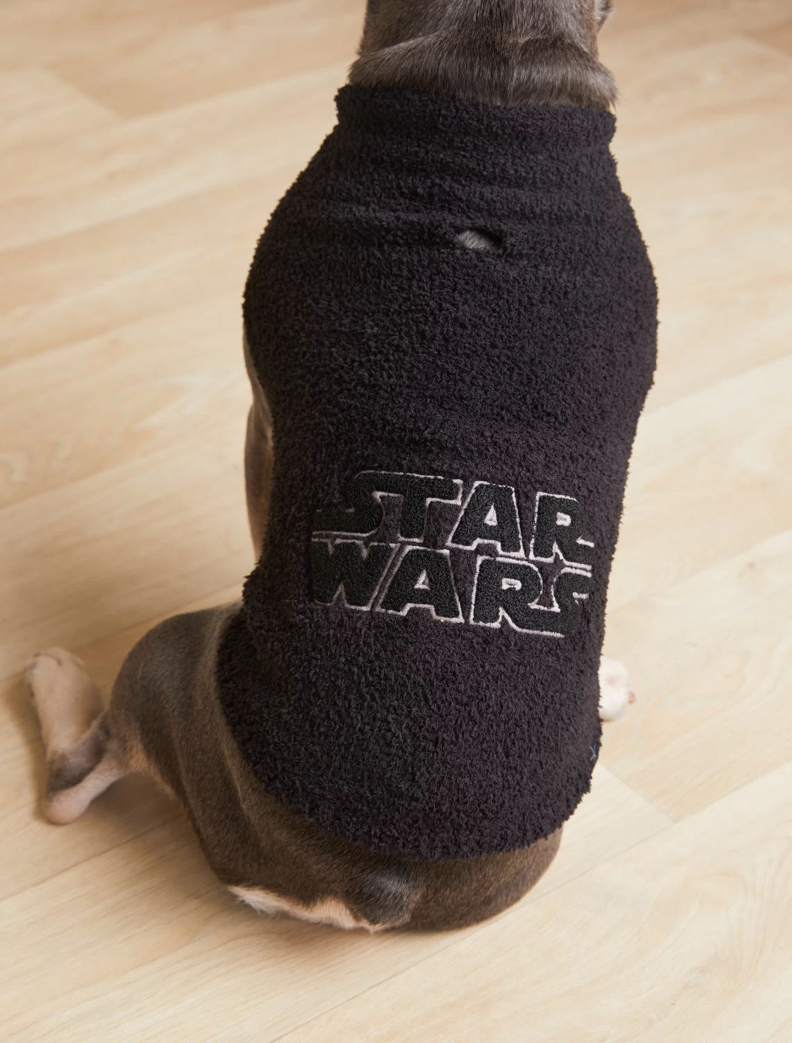 Channel galactic comfort with this CozyChic® Star Wars™ Classics Pet Sweater. This fold over turtleneck pet sweater will transport your pet “far, far away” where coziness awaits. Model is wearing a size M.