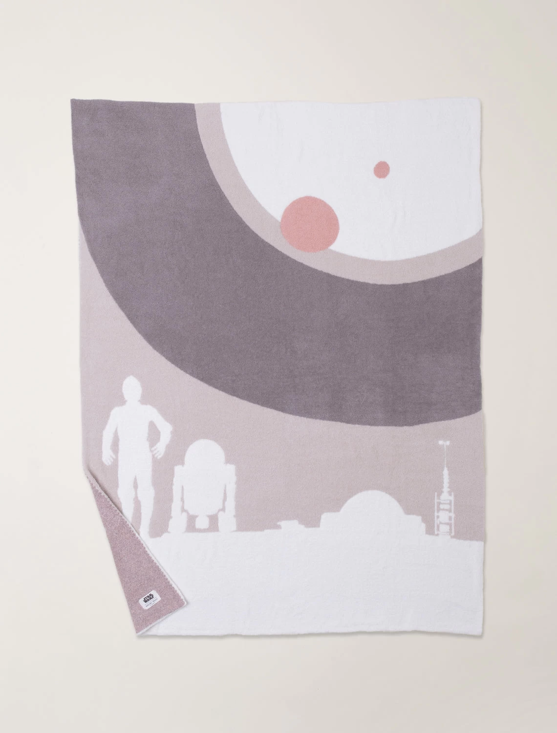 The nostalgic landscape on this ultra-plush throw depicts the warm desert sands of Tatooine from Star Wars Episode IV: A New Hope™. This moment captures C-3PO™ and R2-D2™ gazing out at the iconic binary sunset. Packaged and tied with custom Star Wars ribbon, this item is perfect for gifting in any galaxy.