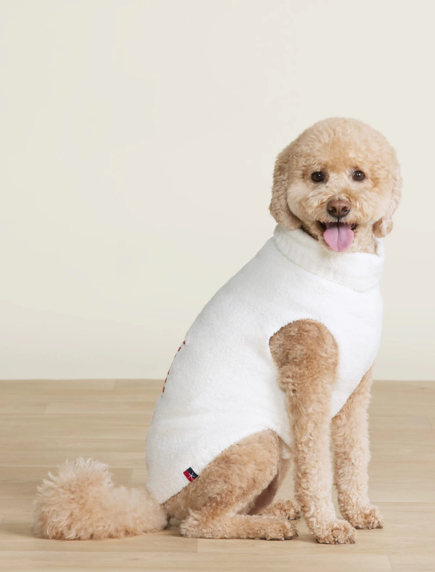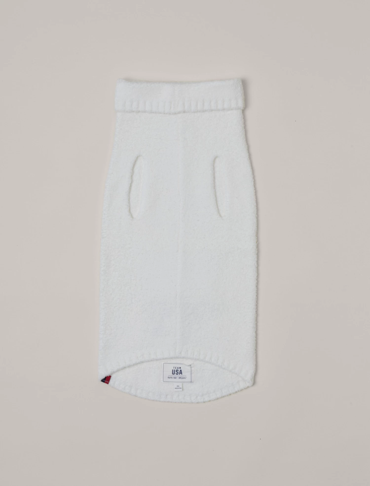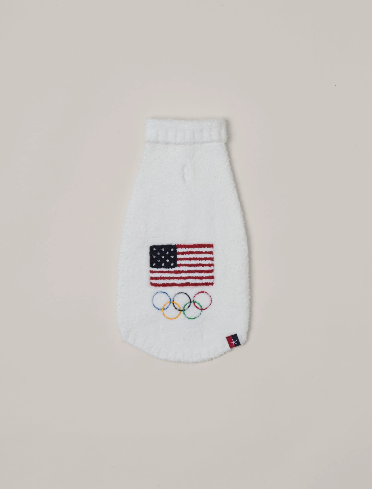 Your pup will stay warm and fashionable with CozyChic® Team Usa Flag Olympic Ring Pet Sweater. Its American Flag and multi color Olympic ring logo loop embroidery make it a stylish choice for any patriotic pup. Plus, with its fold-back turtleneck and leash access slits, your pet can stay warm and comfortable while out on a stroll. Models are wearing Size S or XL.