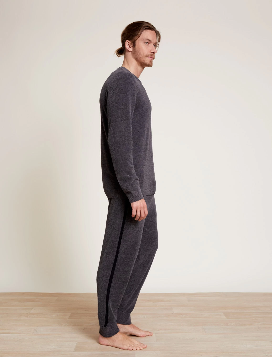 Model is 6’1″ and wearing a size L.
