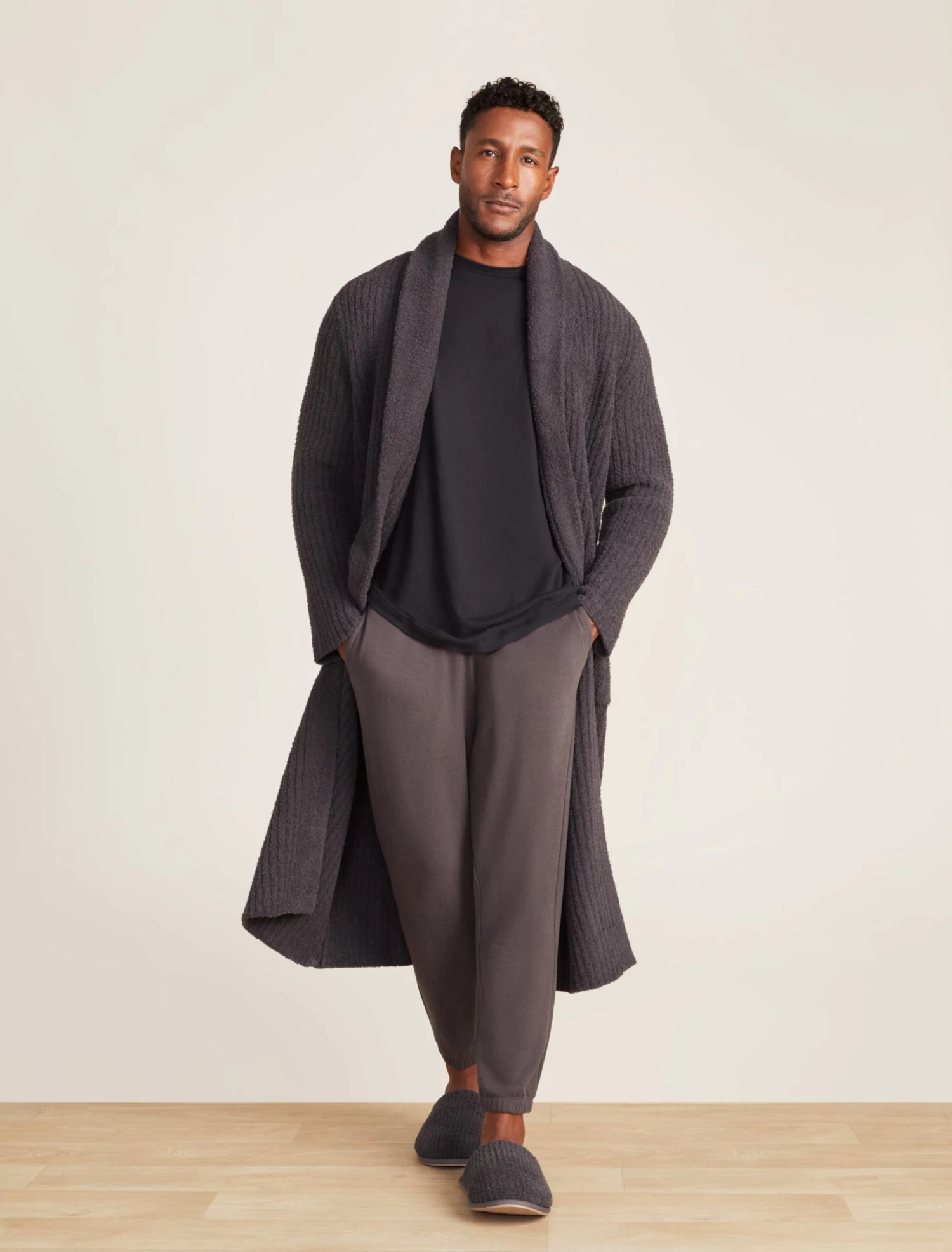 Crafted from 100% recycled CozyChic® microfiber material, this robe features a fully ribbed design and a shawl collar for extra warmth. The unisex robe also has a belt and side loops for perfect fit and front patch pockets for convenient storage. Enjoy a comfortable, sustainable robe perfect for relaxing. Model is 6′ 2″ and is wearing a size 2.