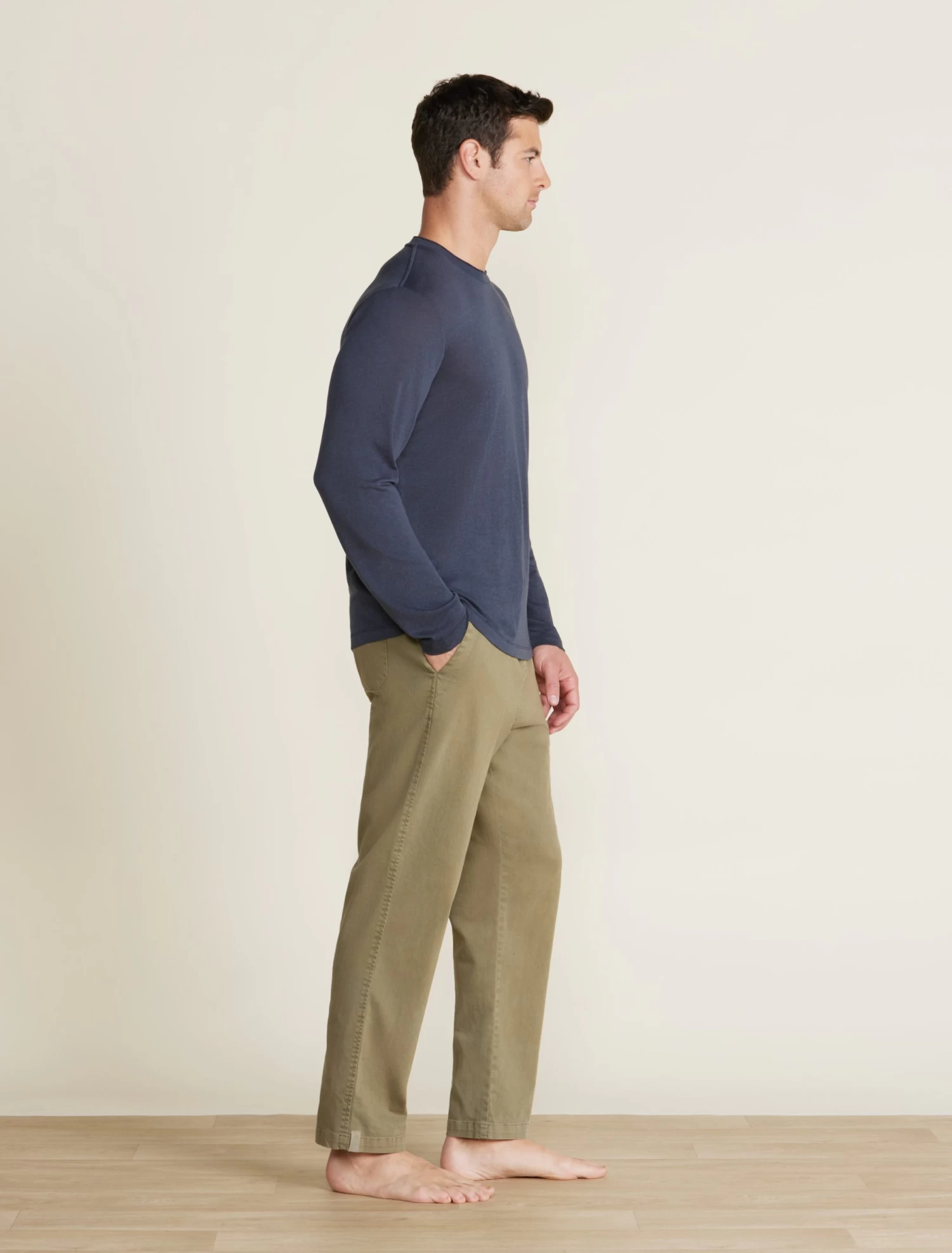 From our Barefoot Dreams Malibu Collection®, this tee features a long sleeve body with a cut neck detail and straight hem. Its slub burnout material offers a unique texture and superior comfort, making it perfect for cooler days outdoors. Model is 6′ 2″ and is wearing a Size L.