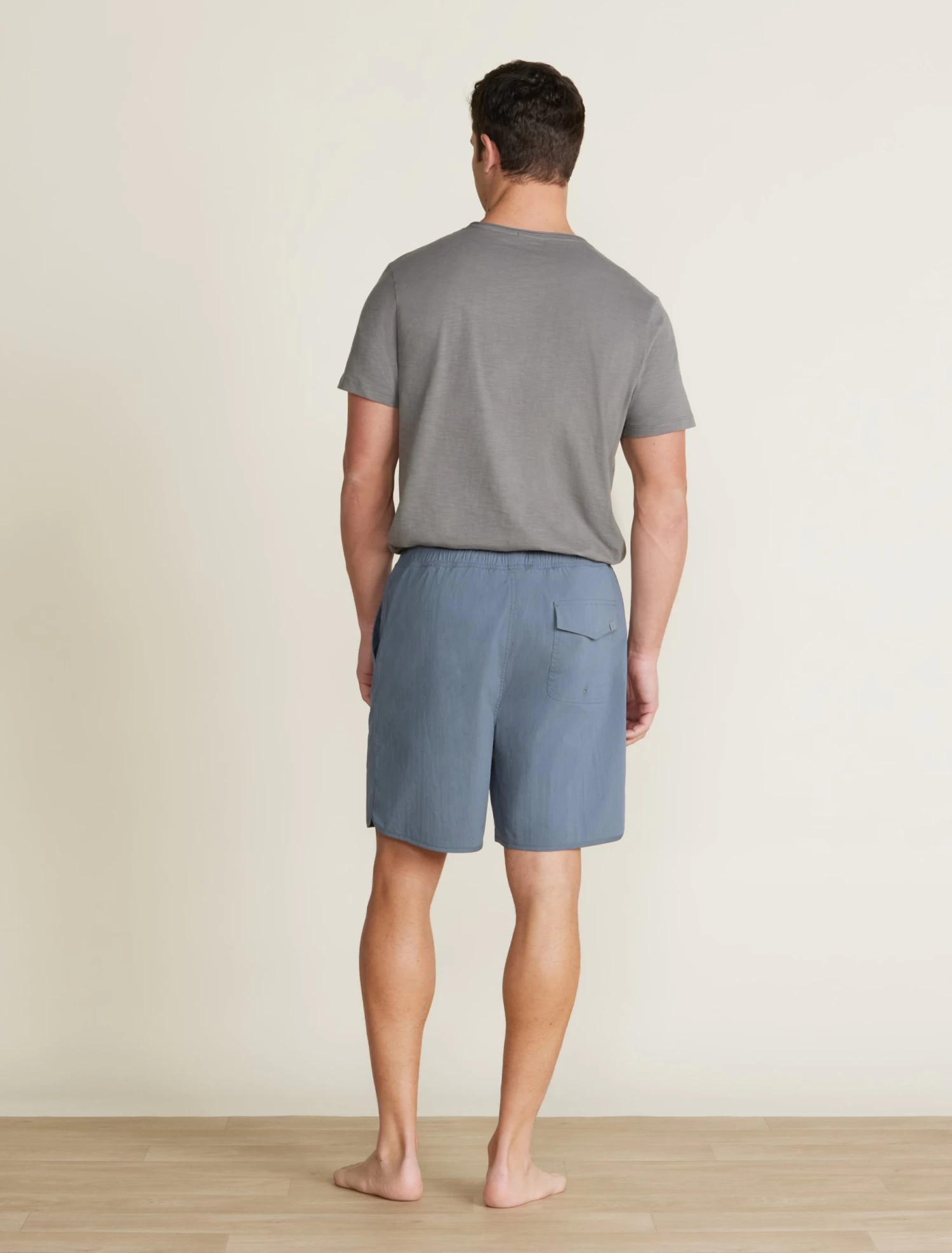 Made for active beach days, these men’s elasticated waist boardshorts feature a drawcord and stretchy waistband for secure, comfortable wear. With a faux front fly and a back pocket with vent and velcro closure, these shorts are designed to stay in place while providing ample storage. Inseam – 6.5″. Model is 6′ 2″ and is wearing a Size L.